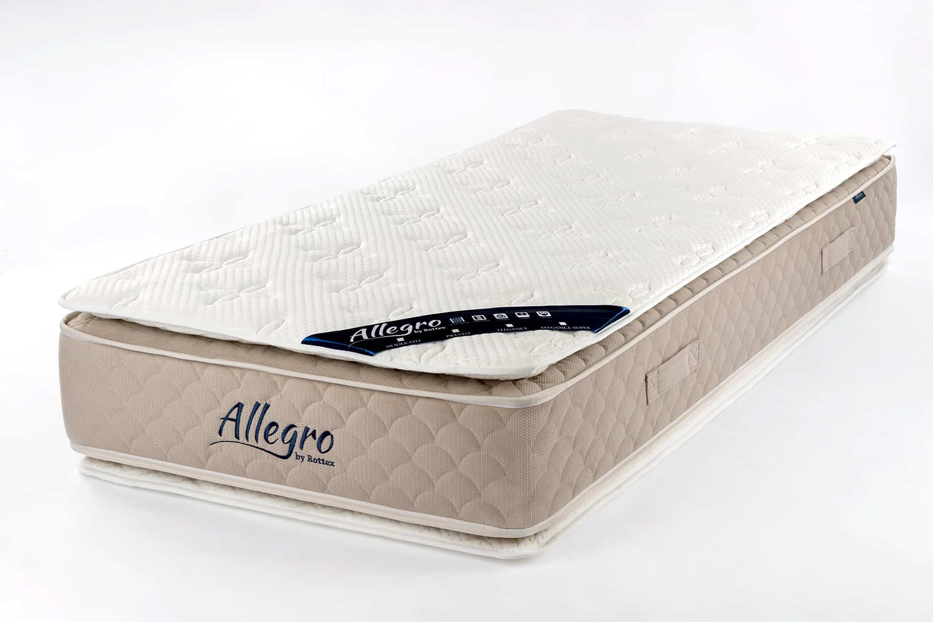 Az Allegro Moderato táskarugós matrac az Allegro zsákrugós matraccsaládban a kivételes luxust és a páratlan kényelmet jelenti. A Moderato matrac mindkét oldalán megtalálható top pillow extra párnázó réteg az igazi luxus komfortot kölcsönzi a matracnak és a határozott 5 zónás német zsákrugó rendszernek köszönhető stabilitás, alátámasztás és ellenállás ellenére az Allegro Moderato matrac egy kellemesen lágy matrac, amely azonban képes és alkalmas arra, hogy a gerincoszlopot a megfelelő alátámasztásban részesítse az éjszakai pihenés során.